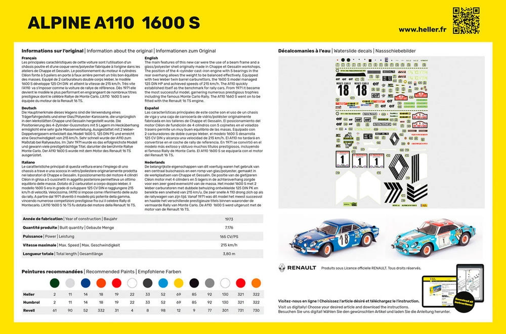 Alpine A110(1600) Kit Ref. (including Paints,brush And Glue) – Heller